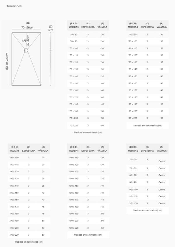 Medida Comprimento | 80, 90, 100, 110, 120, 130, 140, 150, 160, 170, 180, 190, 200, 210, 220 |